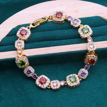 Thiết Kế Cổ Điển Phụ Nữ Bạc Màu Bracelet Xanh Trắng Multicollor Zircon Trang Sức